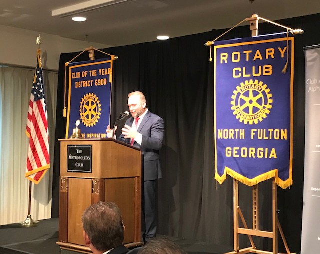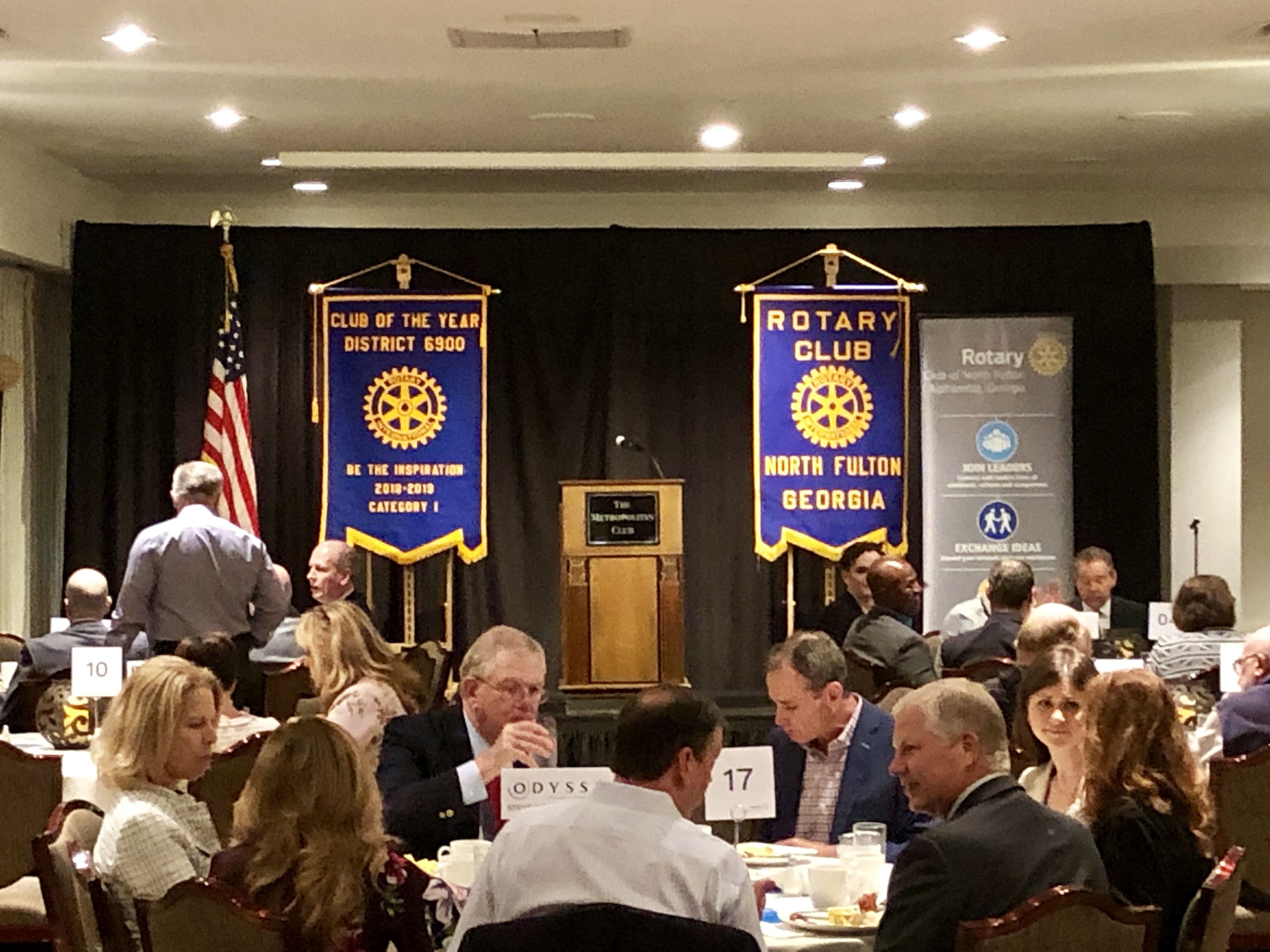 Signature Community Service Project for each year. Breakfast for 200-300 business professionals from North Fulton County. Representatives from multiple faiths present a message complementing the National Day of Prayer theme. Music is provided and a Key Note speaker communicates an inspirational message to promote unity amongst all faiths. As it is purely a community service event, the monetary goal is to break even from table proceeds. This year will be our Club's 18th Prayer Breakfast, scheduled on the National Day of Prayer, May 7.