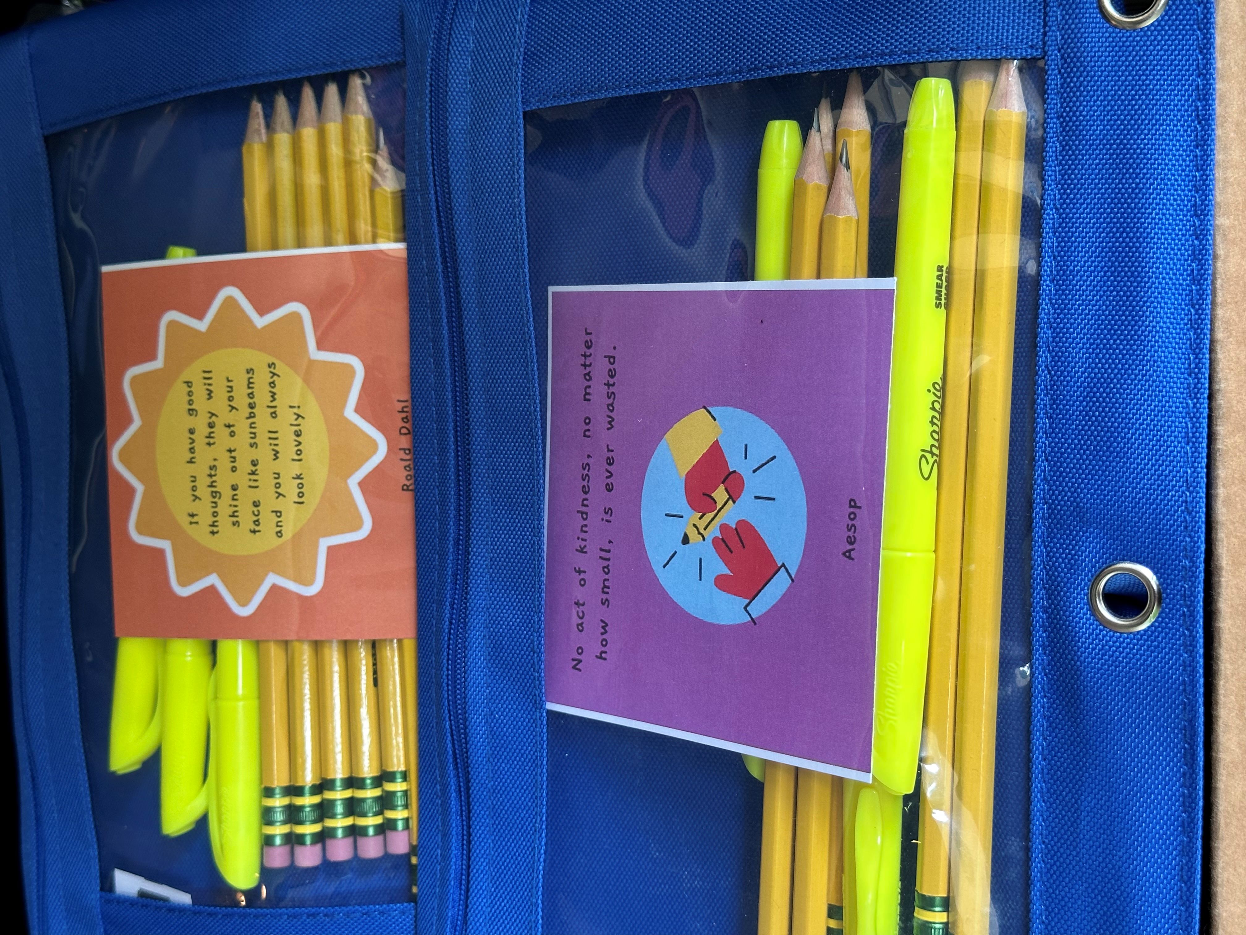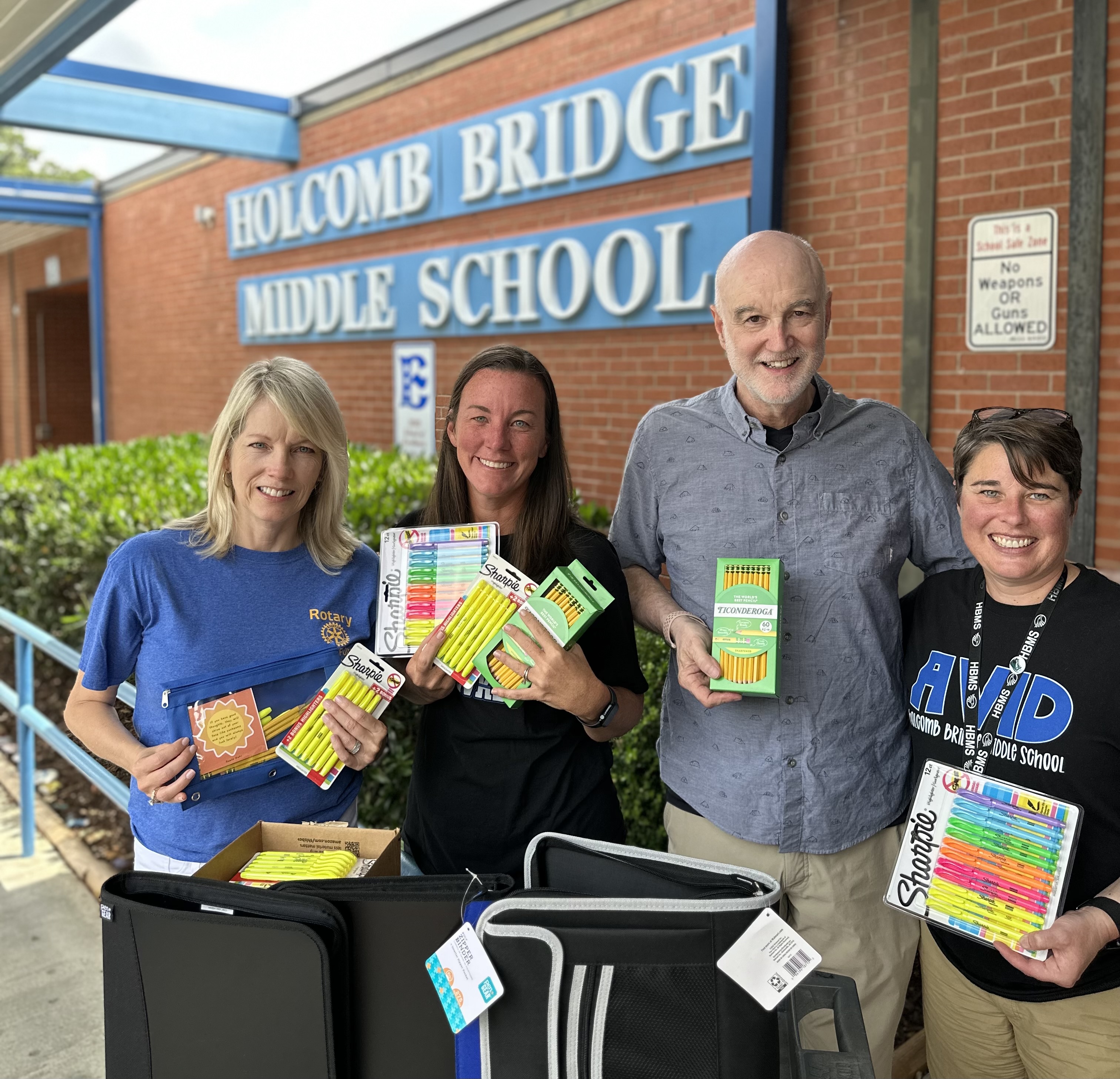 North Fulton Rotary donated the most needed school supplies of binders, dividers, pencil pouches, highlighters, pencils and earbuds to Holcomb Bridge Middle School, a Title 1 school. These supplies help many students get off to the right start at the beginning of the school year and are very much appreciated by the staff and students. We also included words of affirmation in each pencil pouch to encourage the students to get off to the best start for their school year.
